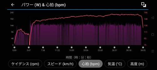 「最後の30分、気を抜くとすぐに120W台に落ちました。