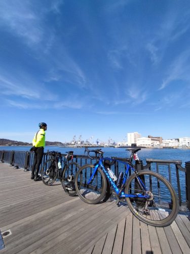 寒かったので、ハンドルウォーマーしてました。山も冬景色。